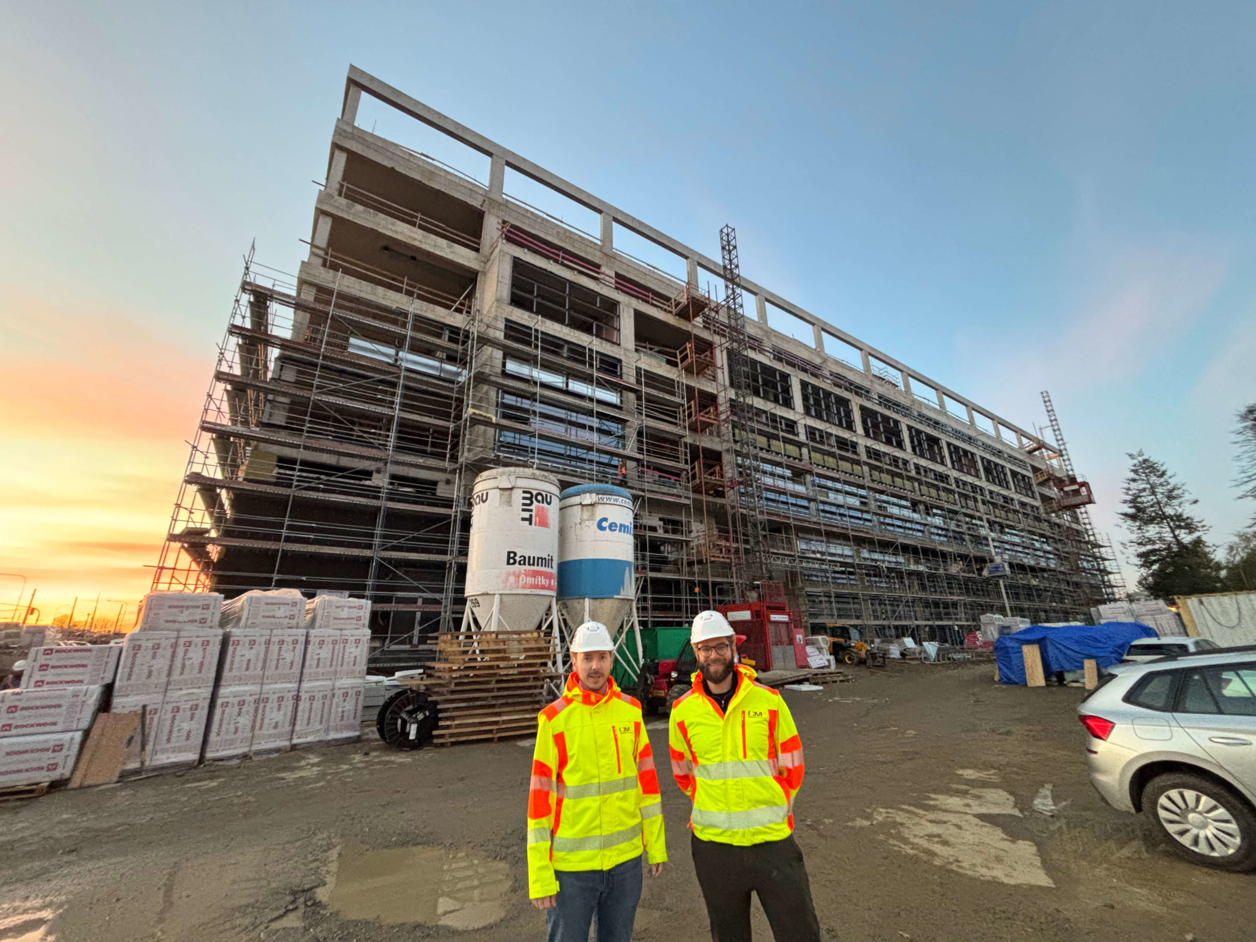 Stavba byla zahájena na jaře 2024. Hrubá stavba byla dokončena v září 2025, pokračují práce na fasádě, vnitřní instalace a povrchy. Dokončení stavby se předpokládá v létě 2026.
